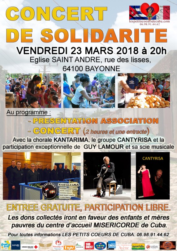 AFFICHE CONCERT mars mars 19, 2018 2339 × 3311 CONCERT SOLIDARITÉ le vendredi 23 mars à 20 h, à Eglise SAINT ANDRÉ, rue des lisses, 64100 BAYONNE.