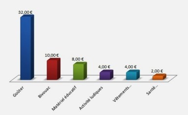 – Le goûter : il a lieu tout au long de la période. Le coût par mois est de 100 euros, ce qui fera un total de 1600 euros.